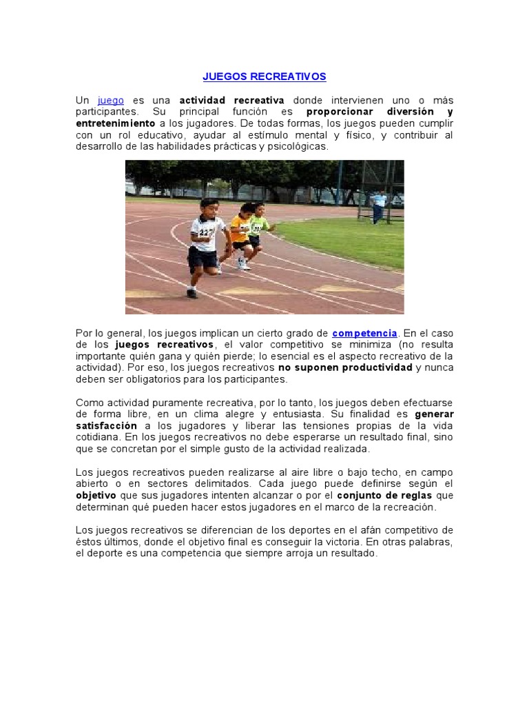 Cada equipo ocupará una parte de la pista: Juegos activos para familias, negocios y espacios públicos. ¿sueles jugar con tus hijos al aire libre? Areneros, balancines, camas de muelles, juegos gigantes, módulos multijuego y todo lo que necesitas para equipar zonas de juego. Hay juegos educativos de exterior para todas las edades. ¿conocías estos juegos recreativos al aire libre? Estos juegos infantiles se pueden realizar en el jardín de casa o en otros espacios al aire libre, escoged el que más se ¿vemos juntos estos juegos infantiles al aire libre? Desde uncomo, te traemos 18 juegos al aire libre para jóvenes para que todos juntos podáis matar el aburrimiento y aprender a la vez. Maratón 6 criquet actividades recreativas bajo techo 1. Es un juego al aire libre para niños que puede ir de lo más. Disfruta del aire libre con todos los juegos para niños y mayores, buscando insectos, afinando tu puntería o practicando tu deporte favorito, ¡no te aburrirás! Colección con cientos de juegos, retos, penitencias y competencias para organizar fiestas y eventos recreativos. Más allá de juegos clásicos como la pelota o el pañuelo, también podemos sorprender a nuestro hijo con una serie de juegos muy divertidos, con los que.